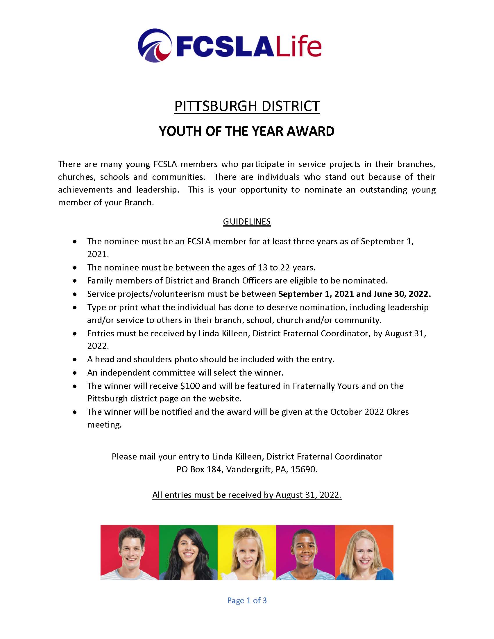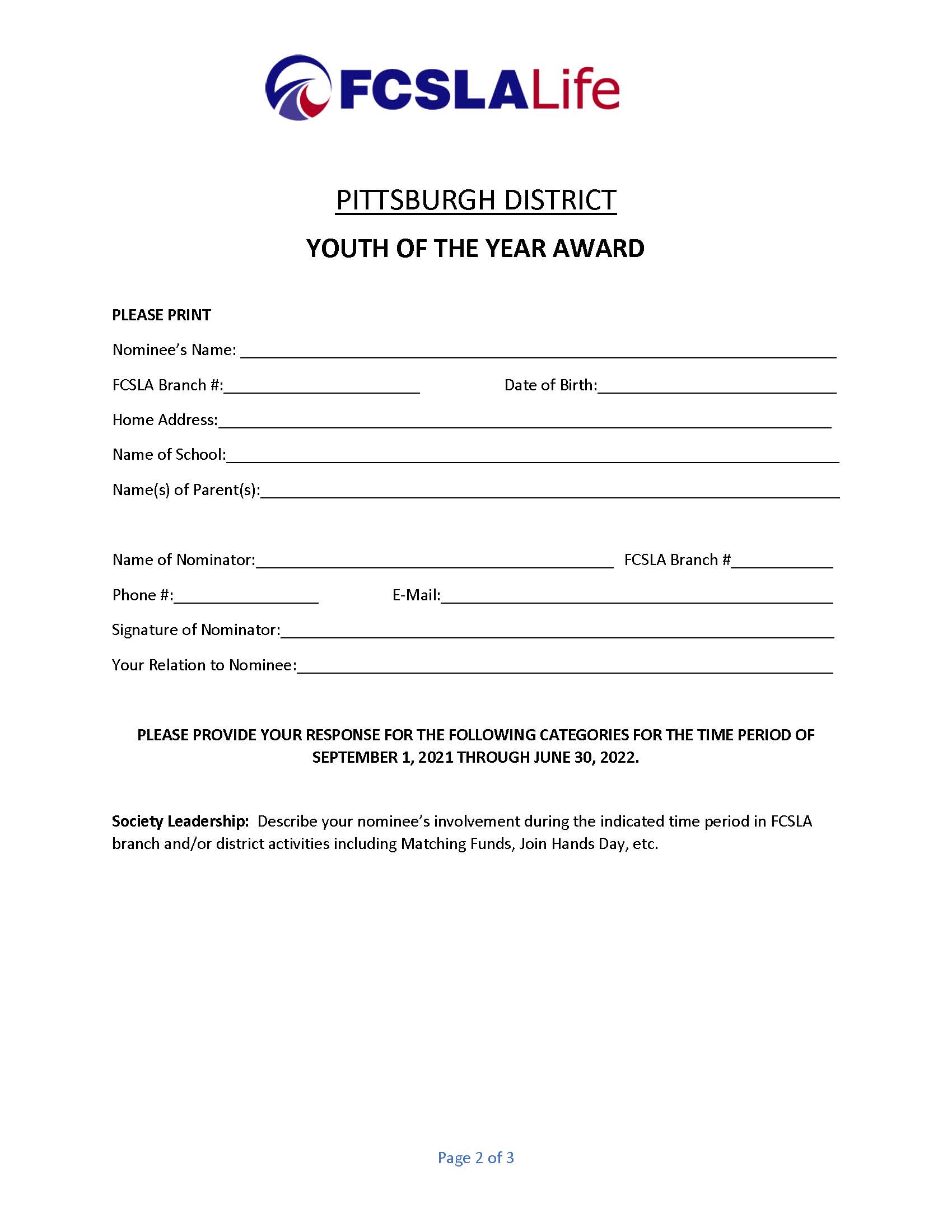 The District Officers have finalized the plans for the Pittsburgh District’s first Youth of the Year Award. Many of our young members participate in projects their branches, churches, schools and communities. In an effort to involve more of our young people, we would like to recognize one of these special members. Applications for nominees along with guidelines for nomination were given to branch secretaries to inform their members and copies will be mailed to secretaries not in attendance at this meeting.